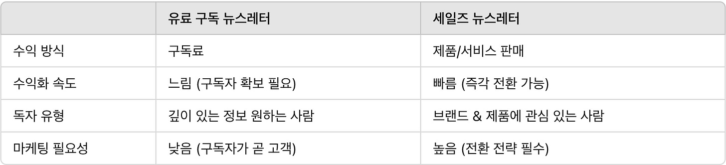 뉴스레터 수익화 전략: 유료 구독 vs. 세일즈 뉴스레터